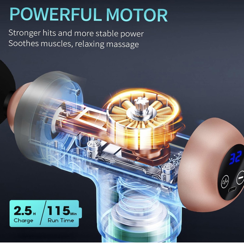 نمایشگر ال ای دی 32 حالت تنظیم ضربه سرعت چرخش 3000prm دارای باطری لیتیومی 1800 میلی امپر خاموشی خودکار بعد از 15 دقیقه کارکرد مداوم